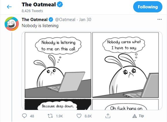 Matthew Inman, the @Oatmeal, is a funny Twitter account thanks to his hilarious comics, which he publishes too often.