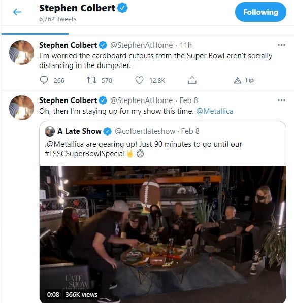 It would be difficult not to be amused by him. Stephen Colbert’s smart, funny throwaway tweets can strike anything on the earth.