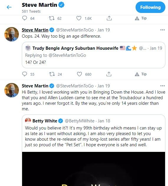1) @SteveMartinToGo