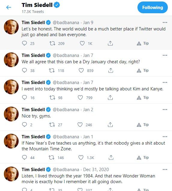 The Nebraska based creative director Tim Siedell is also a blogger who frequently tweets funny with elegant nuances and build-in dark humor.