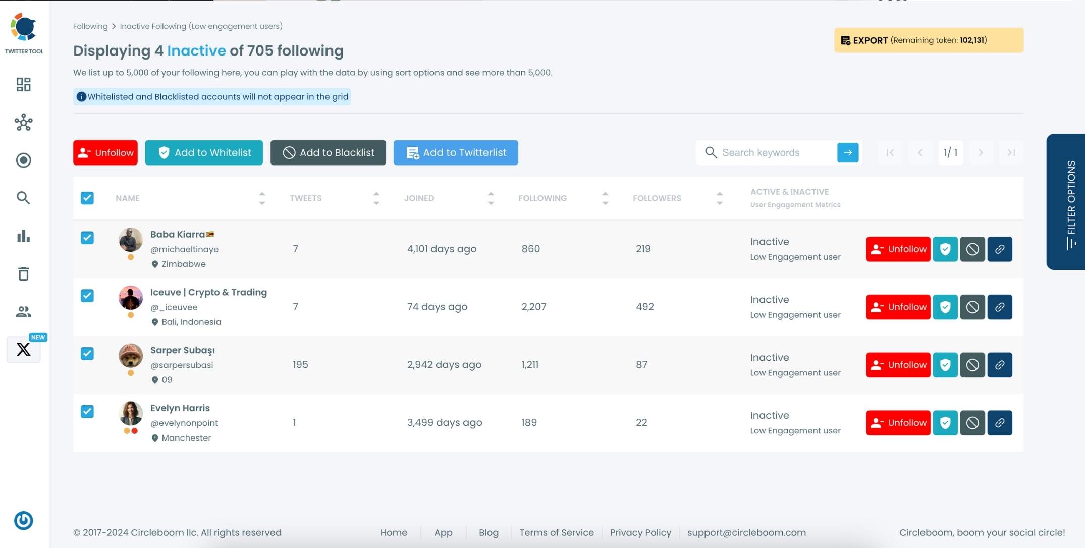 Circleboom’s filters allow you to identify and unfollow inactive or spammy accounts directly, keeping your feed clean and relevant.