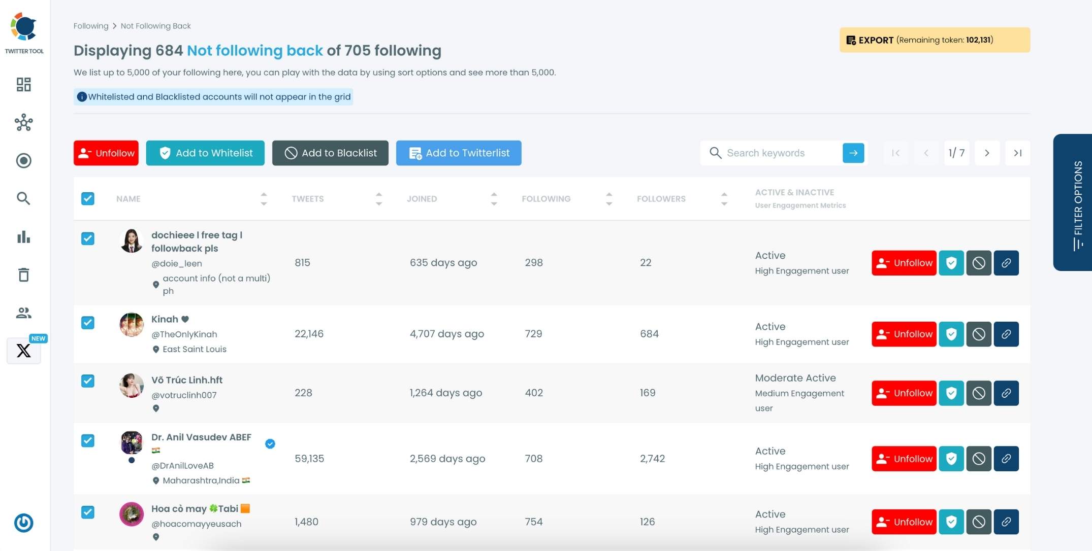 Use Filters to Find Which Accounts to Unfollow: