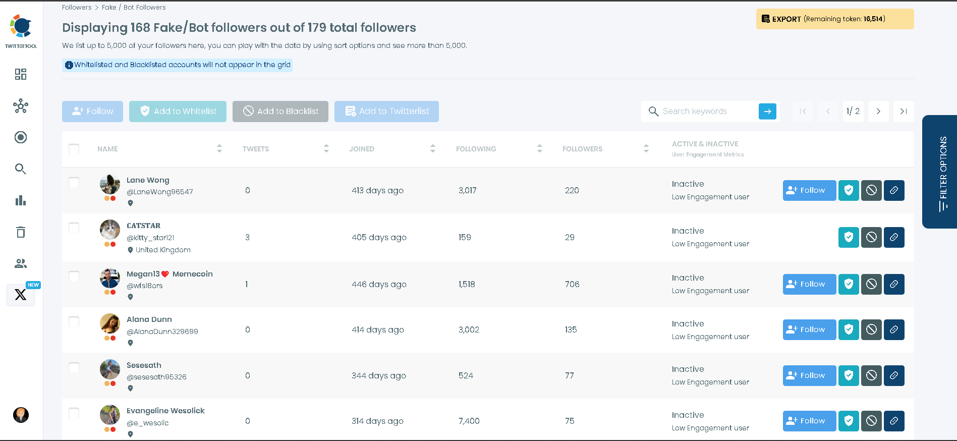 You can also start by listing all your followers and applying advanced filters to the results to conduct your Twitter audit in even more detail.