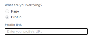 If you want to get your personal profile verified on Facebook, you will fill out the same request form but choose the Profile option at the top.