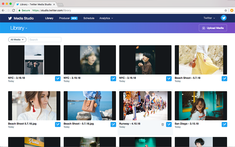 - Other media types can also be handled with Twitter Media Studio. Indeed, it allows you to manage all of your formerly uploaded content, such as videos, photos, and GIFs that you originally uploaded using Twitter's early video uploader (now replaced with Twitter Media Studio)