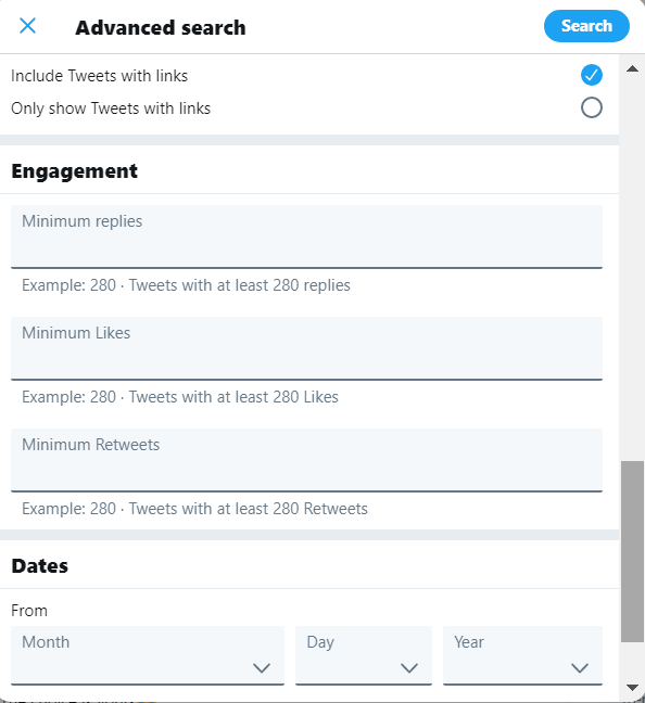 - If you only want tweets with high engagement, you can add the engagement numbers as required.