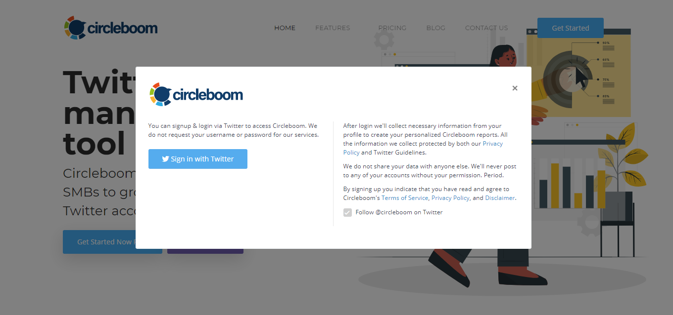 Step #1: Let's log in Circleboom dashboard with your Twitter account.