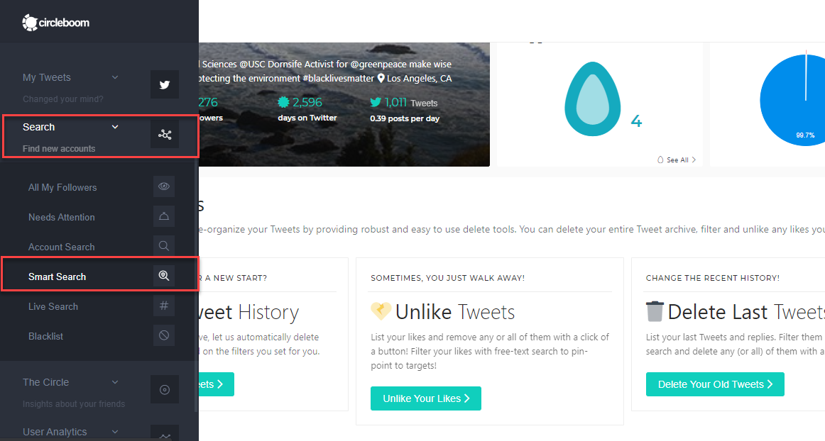 Step #2: With Circleboom's Smart Search facility, you can find your target accounts or any other Twitter account you may be interested in.