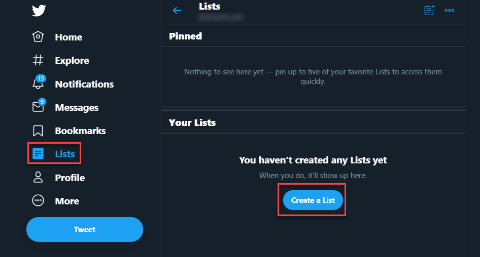 Step #1: On your Twitter dashboard, click on the "Lists" in the navigation bar.