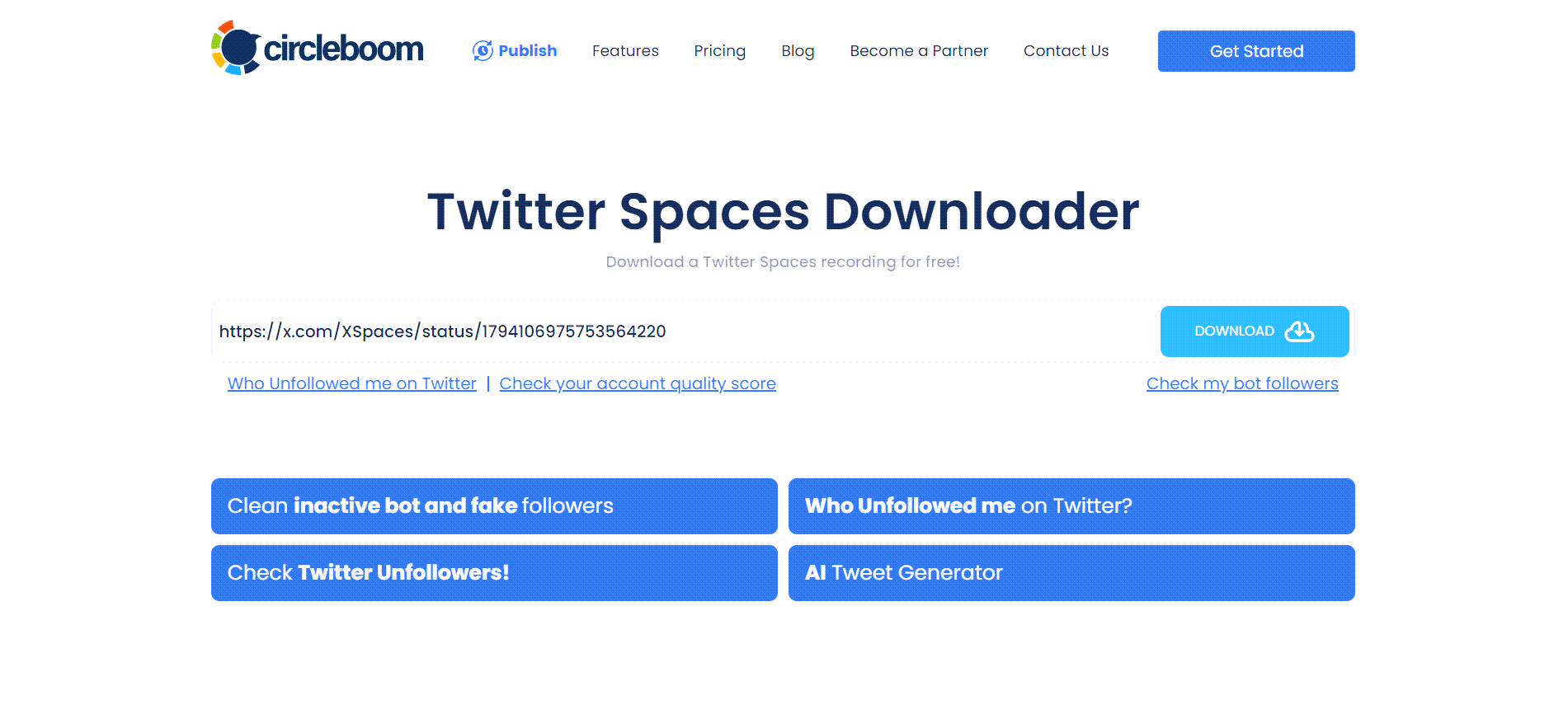 Step 5: Head towards the Twitter Spaces downloader of Circleboom and paste the link of the Space. Then click "Download" and you'll be good to go.