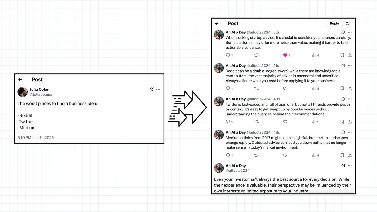Each tweet builds on the previous one, making it ideal for: