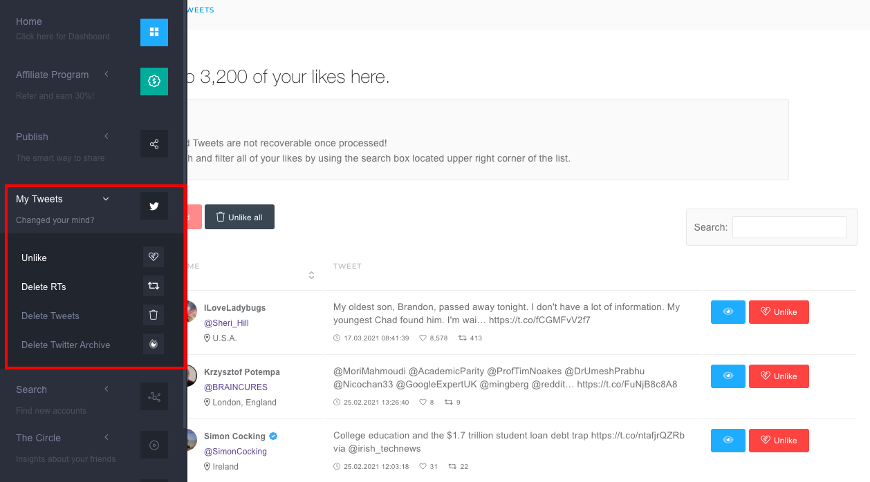 Your Twitter profile should be organized to increase your Twitter followers. Circleboom helps you to control your tweets, retweets and likes on Twitter.