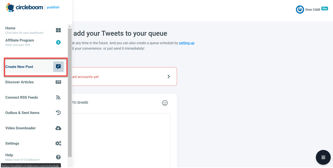 Step #1: Go to the Circleboom Publish dashboard and navigate through the left-hand side menu.