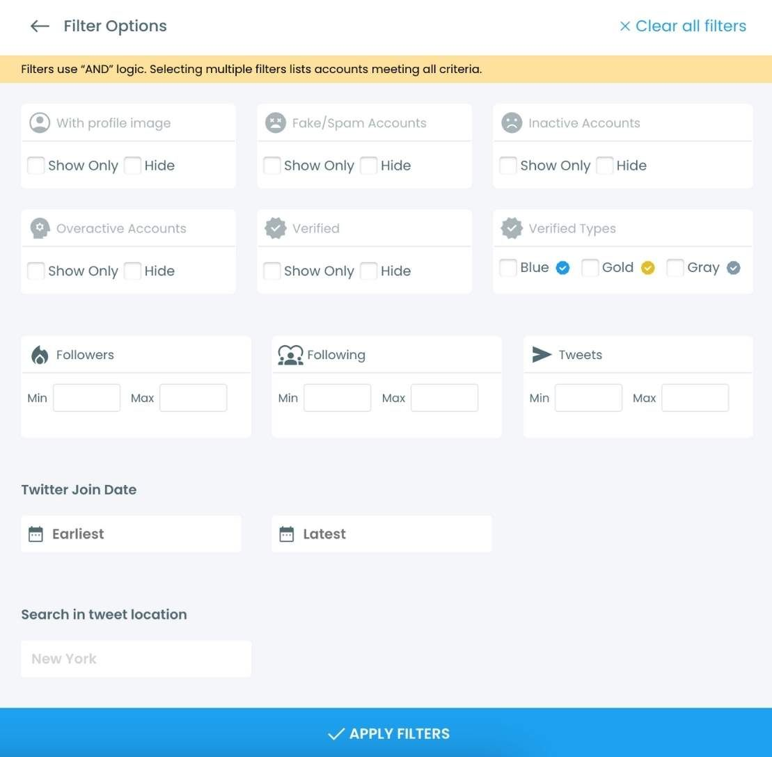 So I needed a deeper search tool — something that could actually filter accounts by their join dates, not just keywords or hashtags.