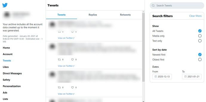 Step #2: Then, you can open the archive file with your browser to find deleted tweets.