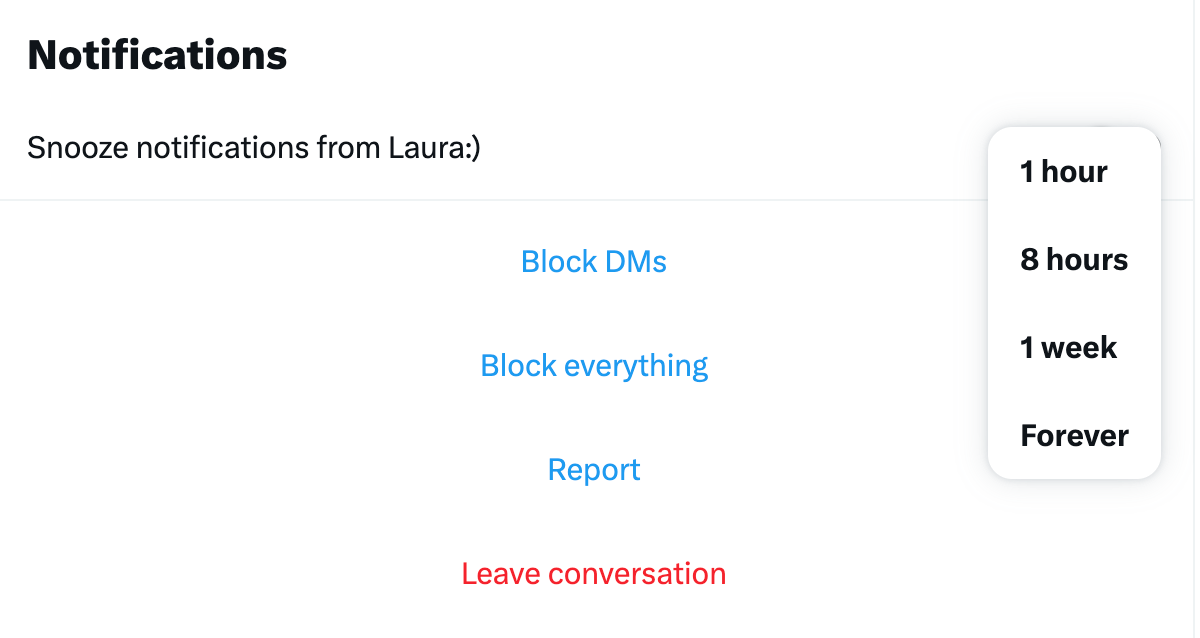 Constant alerts from spammy DMs aren’t just annoying – they can interfere with your work and daily life. After dealing with one too many of these, I realized I needed to turn down the noise. Twitter offers a snooze option that’s really helpful for keeping distractions to a minimum.