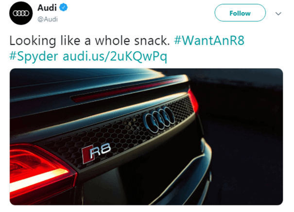 Or, most of us remember how Audi combined product hashtag with campaign hashtags with #WantAnR8.