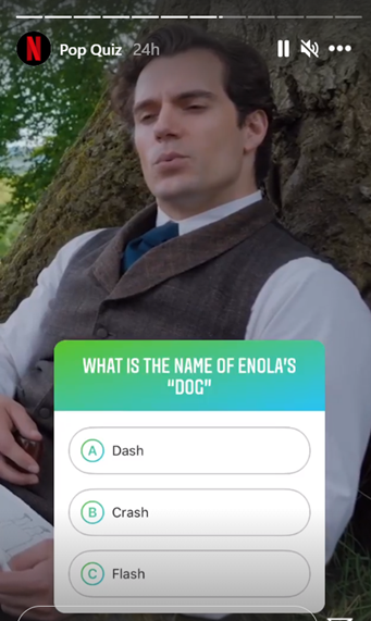 You can also use pop quizzes with multiple answer options as creative Instagram story ideas and assess what is known to your customers or what they need about your brand. Or, have fun! See the pop quiz of Netflix below: