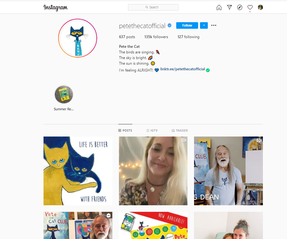 Pete the Cat Instagram account hosts an Instagram Live every day where they provide virtual drawing and reading tutorials to kids. The virtual lessons provided by Pete the Cat have made them a big hit during the Coronavirus when parents want to engage their kids at home. Their hashtag #virtualstorytime resonates highly with parents looking for virtual alternatives at such times.