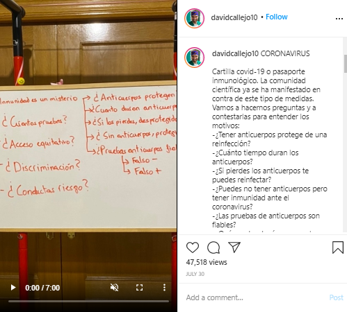David Callejo Crespo is a Spanish medical practitioner who has gained immense popularity on Instagram with his informative IGTV videos on Coronavirus. His posts have seen an increase from 1k views to 811k views since he started posting about Coronavirus. His follower numbers have also increased by 693% in a week.