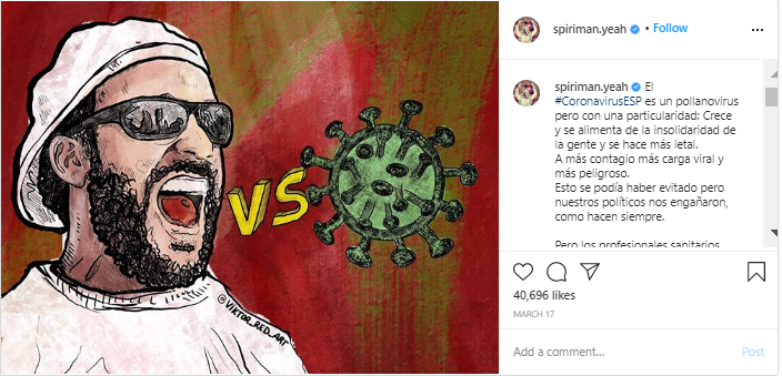 Spiriman is another Spanish health practitioner who has received a huge boost on his already active Instagram account. Spiriman has been known for his medical advice and for raising his voice against the health management of the government. Ever since Coronavirus, his videos have started receiving 20 times the engagement from 10k to 200k video views. His follower numbers have also increased by more than 500% with his videos related to Coronavirus.