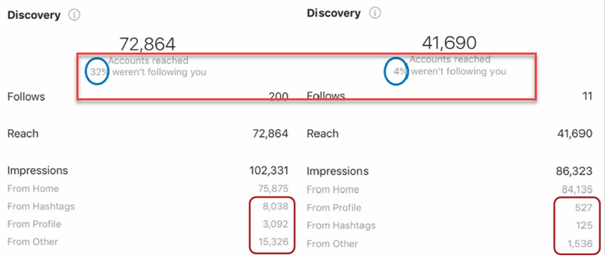 If you see a sudden and prolonged decline in activity on Instagram Insights, you’ve probably been shadowbanned. One of the most useful metrics to consider is the percentage of accounts you reached that were not already following you.