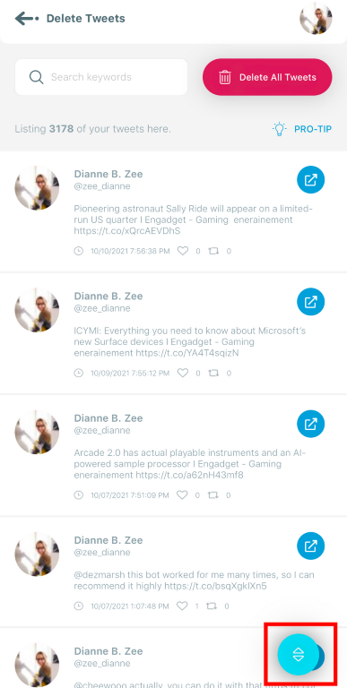 Step #5: Voila! Here, all your tweets, including retweets and replies, are displayed. There's no cap on the number; even if you have over 3,200 tweets, they'll appear here, allowing you to bulk delete them in a single click!
