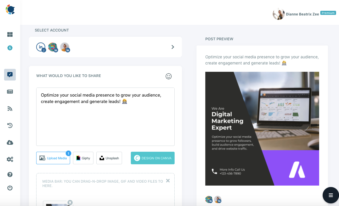 Here, you can select multiple LinkedIn accounts to publish your content simultaneously on different accounts.