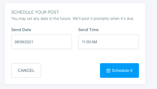 Step #8: Once you click the "Schedule it" button, a new box will open. Here, select the desired date and time that you want to schedule your post.