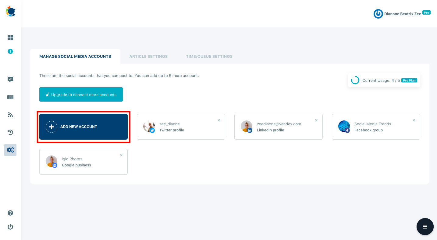 Step #3: After the authorization process is completed, click "Add New Account" to link your Facebook account.