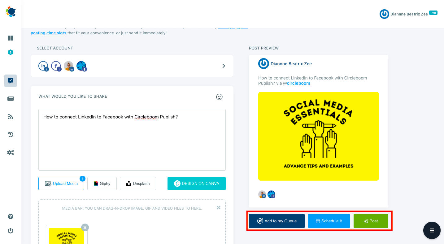 If this is the case for you, it is one of your luckiest days! With Circleboom Publish, you can connect LinkedIn to Facebook to manage them together in one place.