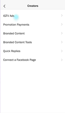 - Go to your Account Settings in the first step. Select “Creator” and “IGTV Ads” from the drop-down options.