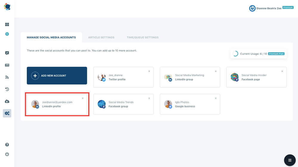 Step #3: On the dashboard, you'll notice your LinkedIn account when you've completed the authorization procedure.