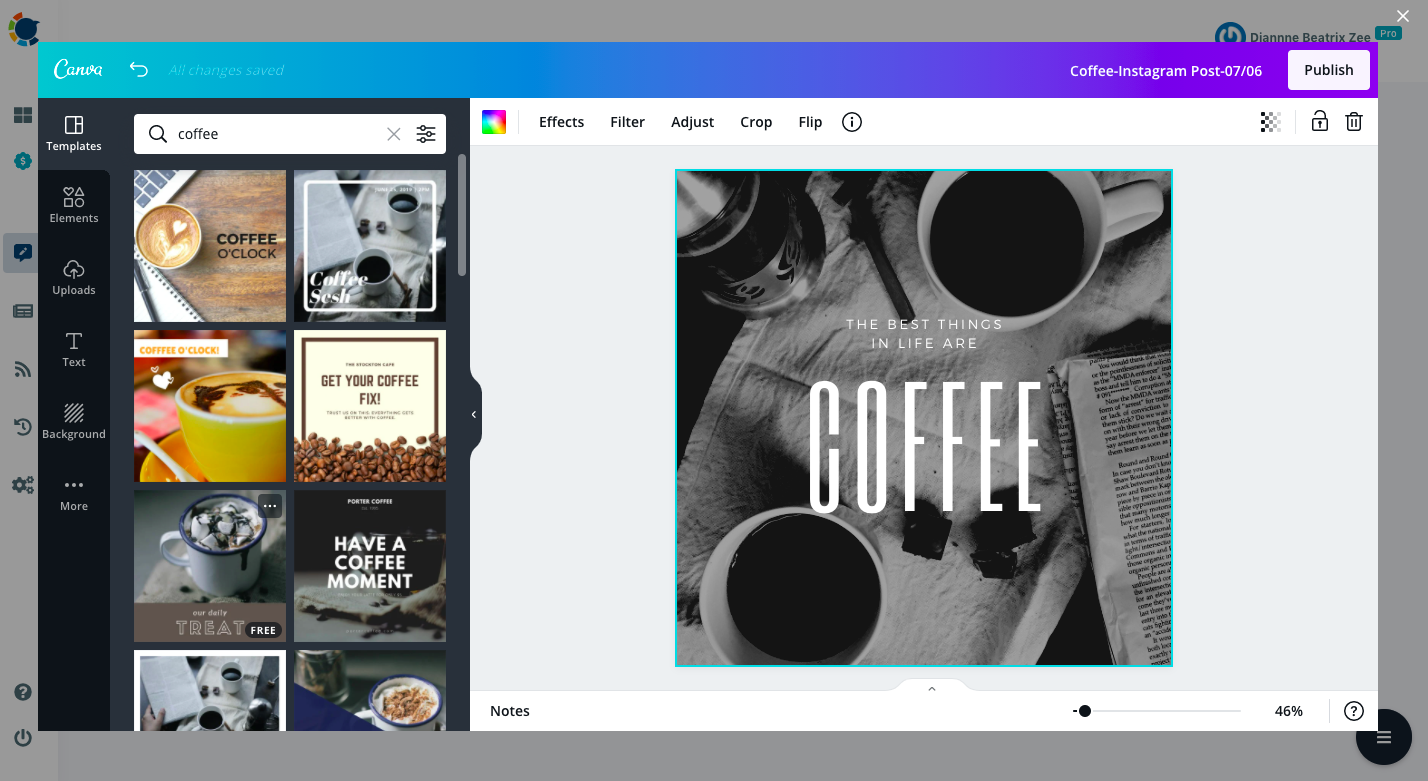 For example, if you run a coffee company, search for “coffee,” and Canva will provide you many ready-to-use templates.