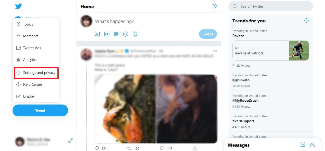 Step #1: Click “Settings and privacy” on your profile’s left-hand drop menu
