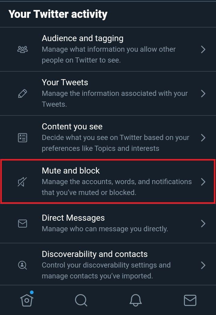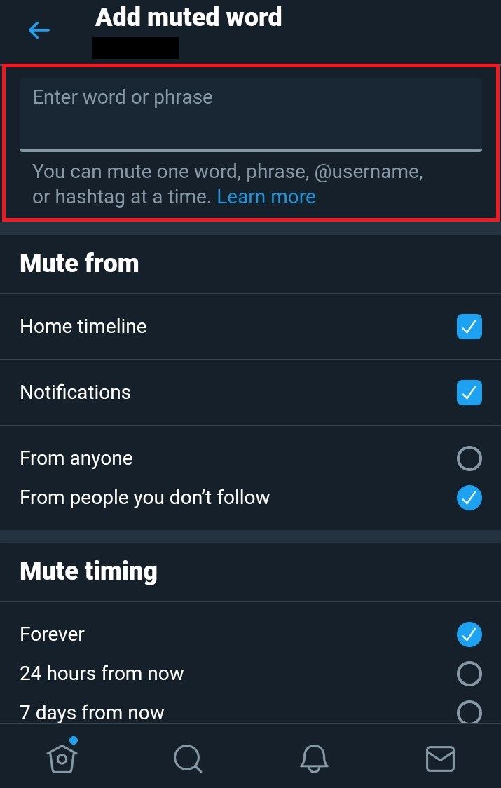 Step #7: If you want to mute those words, phrases, or hashtags from your Twitter timeline, go for “Home timeline”