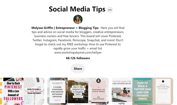 You are free to create as many boards as you like, and they can be arranged into themes, concepts, ideas, or different forms of inspiration to help your audience discover the information they need.