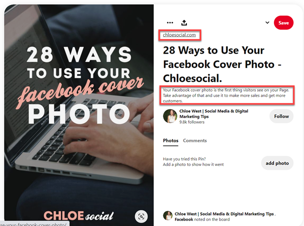 Remember to include a disclosure in the description if your pin advertises a product or service you are affiliated with. Here is where you can learn more about Pinterest affiliate marketing rules.