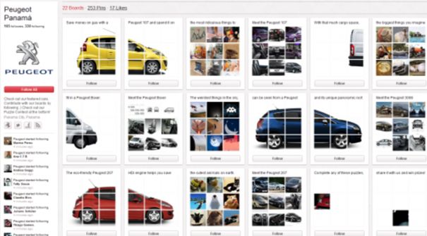 Peugeot, a car manufacturer, devised a fun and innovative social media campaign in which users must locate missing photos on pinboards. The brand established Pinterest pages for its newest models, including Boxer, 107, and 3008. The pictures on some of the boards were absent.