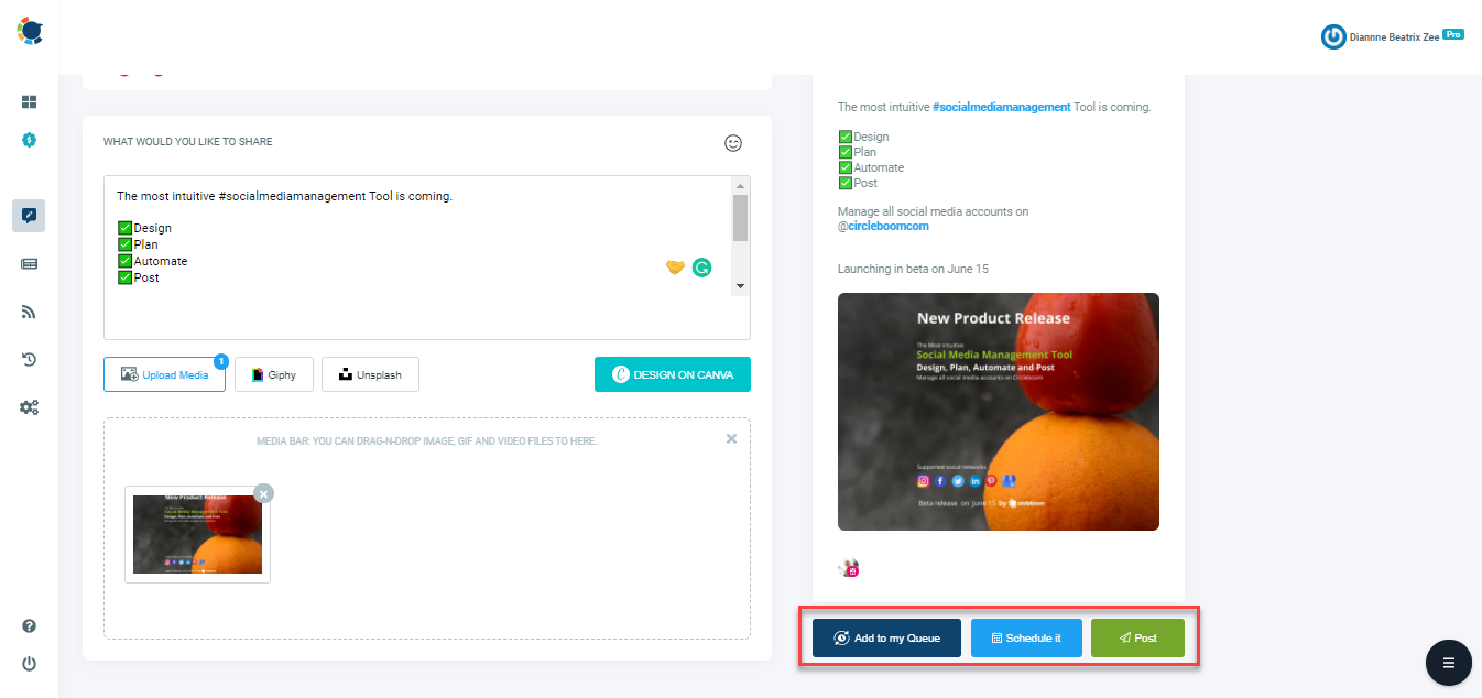 Bonus Feature: You may also use Circleboom Publish's built-in Unsplash, Giphy, and Canva APIs to create and edit your posts. Yes, you heard it right! If you are also a Canva fan like us, you may use Canva's unlimited graphics options to improve your posts on Circleboom Publish.