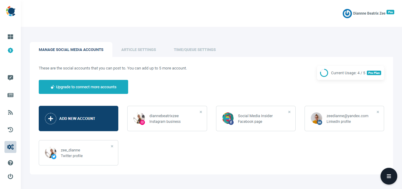 You can add up to 5 different social media accounts in the pro subscription. This way, you can keep up with your accounts on different networking platforms through one page.