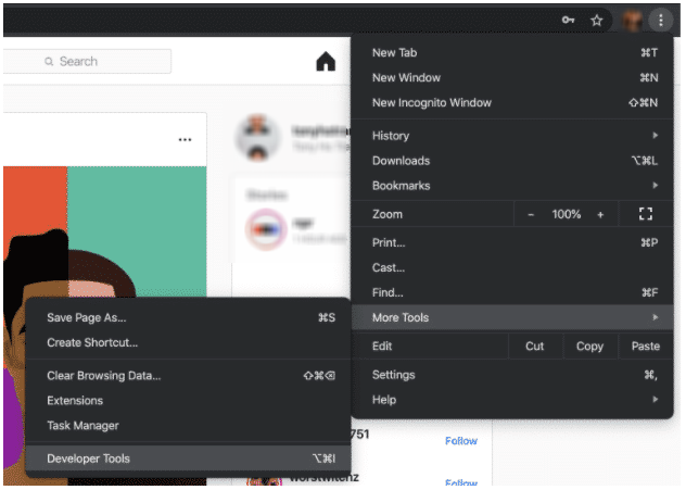 You will see the "More Tool" option on the menu; click it, then select "Developer's Tools."