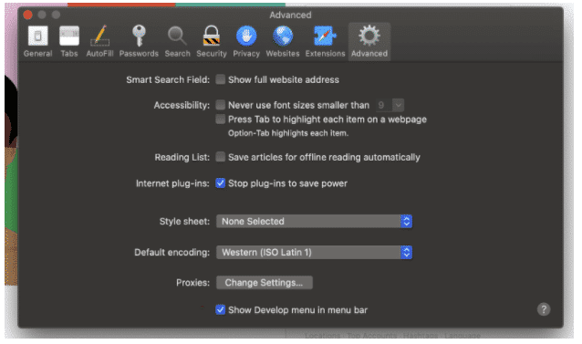 Step #1: Log in to your Instagram account on Safari browser. Open the "preferences" menu, and click the "Advanced" option.