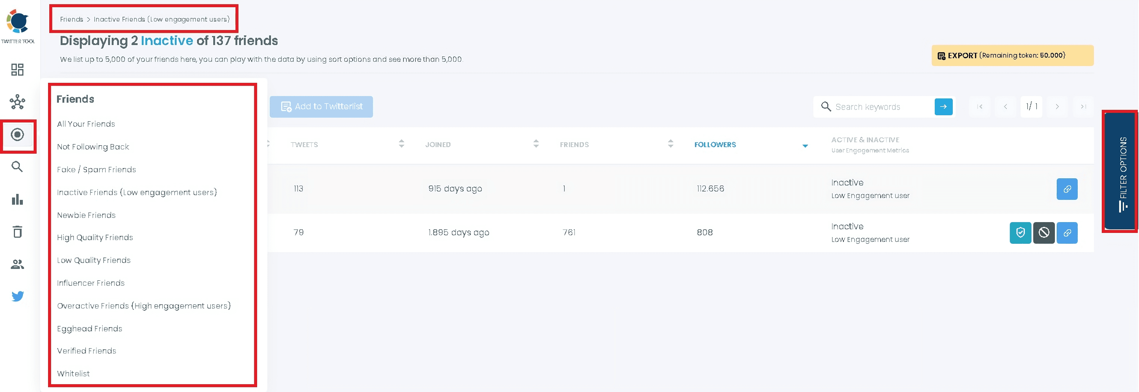 If someone has not tweeted for more than 30 days, Circleboom marks them as inactive accounts, so you may want to identify them.