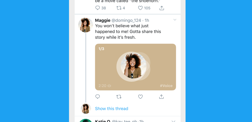 Twitter's point certainly helps today, with podcasts gaining space and people tending to social media in a contemporary way. Next to Twitter's other features such as going live, adding videos, and adding voice/audio will be a great step forward when it becomes available on all devices.