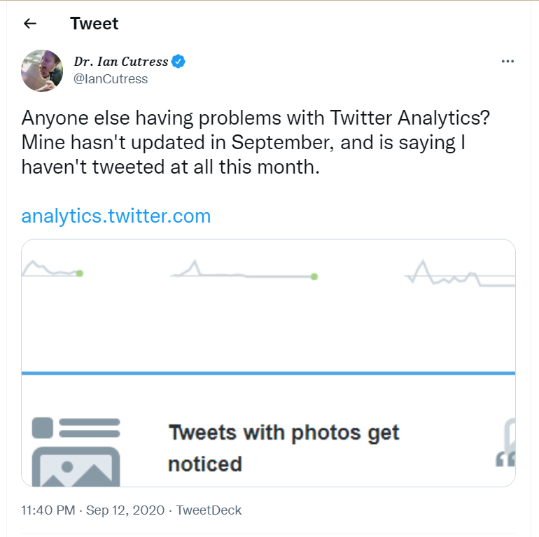 You can see that people share their complaints about Twitter Analytics on social channels. You can look at one example of this below: