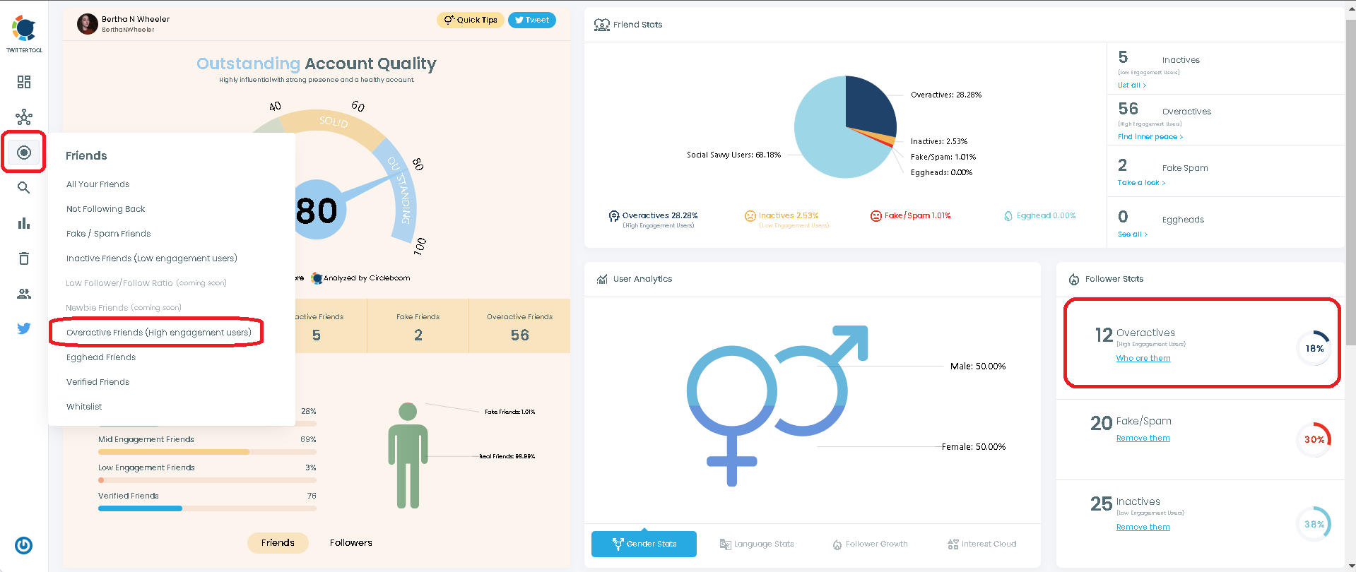 Step #3: On the left menu, you can find the "Overactive Friends" tab.