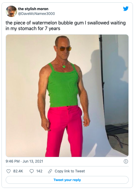 #11 Christopher Meloni's interesting pink and green outfit