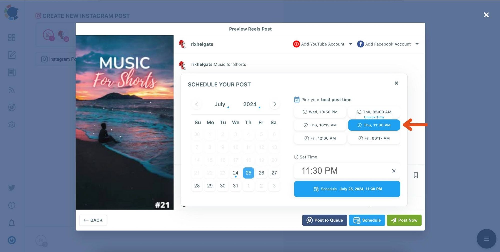 Alternatively, you can set time intervals and automate your Instagram Reels.