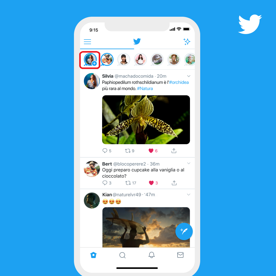 Step #1: Tap on the plus icon on your Twitter profile picture.